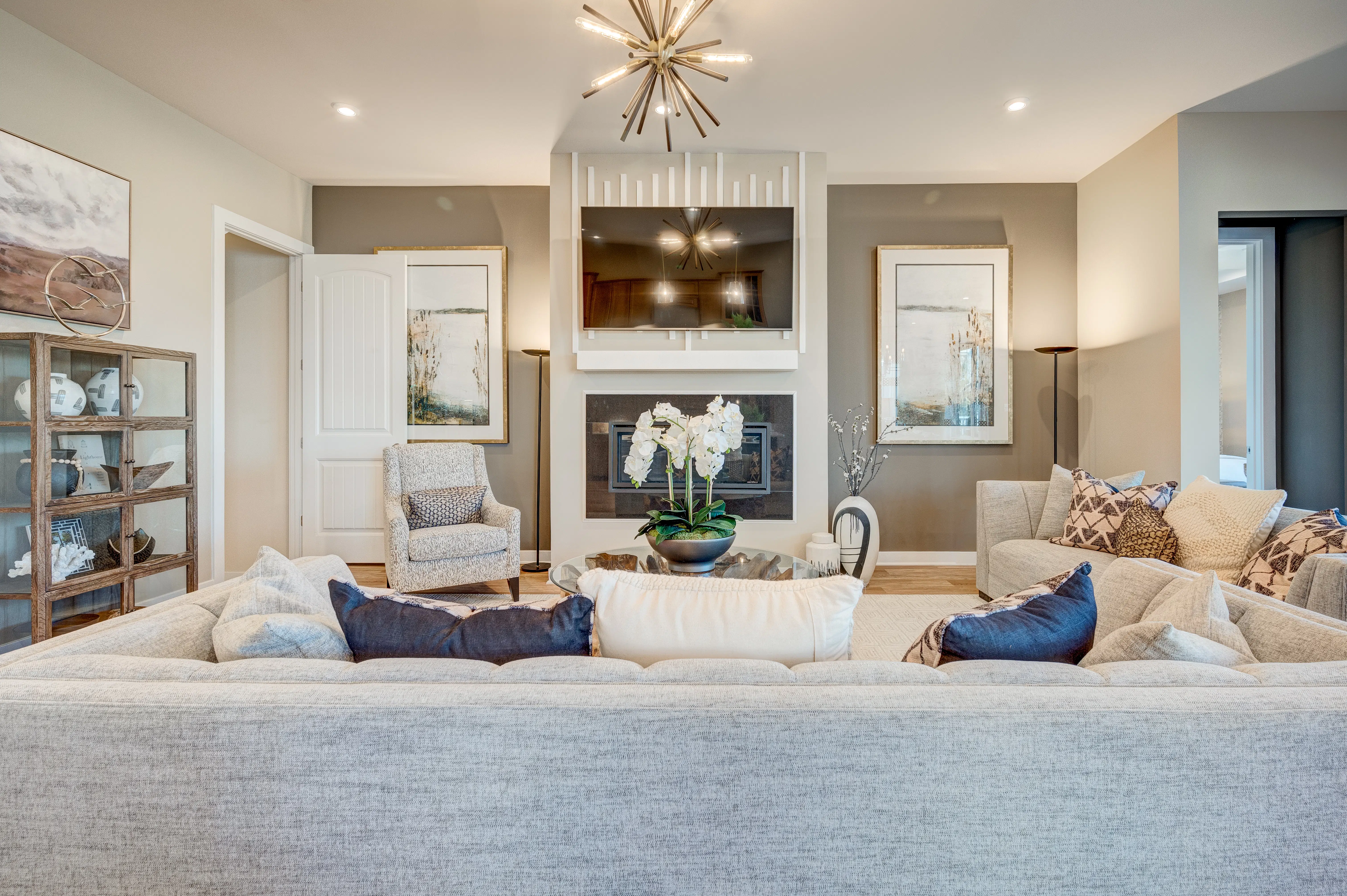 The interior is quite the charmer, featuring a modern living room that's a total masterclass in neutral tones and luxury appointments. We’re talking a statement chandelier that demands attention and an open-concept layout that’s just begging for a cocktail party. Whether you’re relaxing by the contemporary fireplace or prepping a meal in the kitchen: complete with custom wood cabinetry and premium finishes: the quality here is fantastic. It’s the kind of home that feels both grand and incredibly cherished.